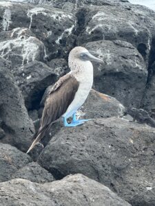 The next morning we went to a tortoise breeding center where we saw baby tortoises. Then, after lunch, we took a boat to another part of Santa Cruz where we hiked to a whole nesting site for blue-footed boobies. I got to see a baby one, still with its fuzz. We went snorkeling and saw all kinds of fish (though again, the 6-year-old did not last long, so I got out of the water with him).